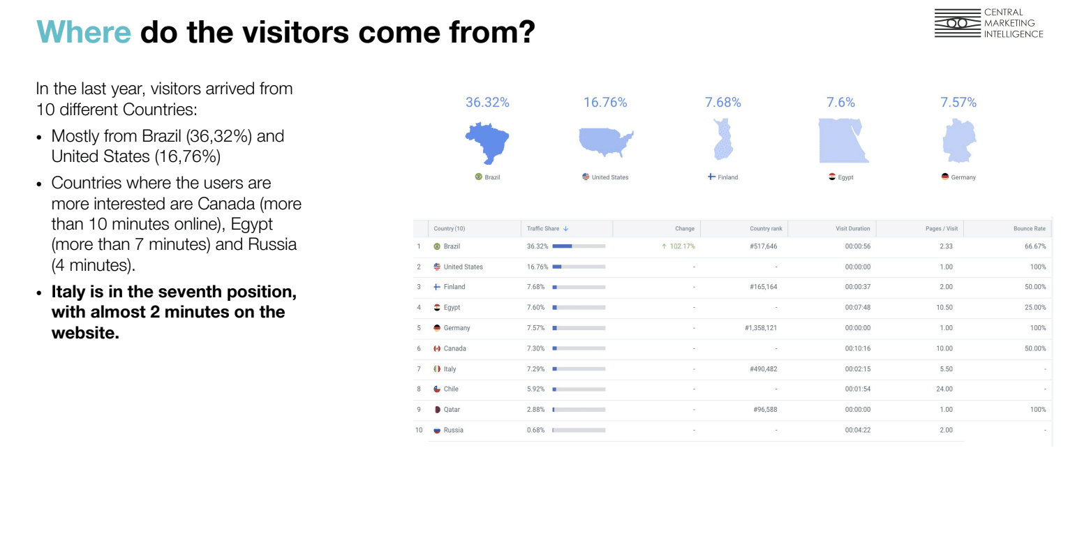 - Siamo partiti dallo studio approfondito del traffico ai sito del Brand e a quello degli altri concorrenti individuati, in modo da poter definire il mercato e compararne i risultati. (Per saperne di più, clicca qui!)