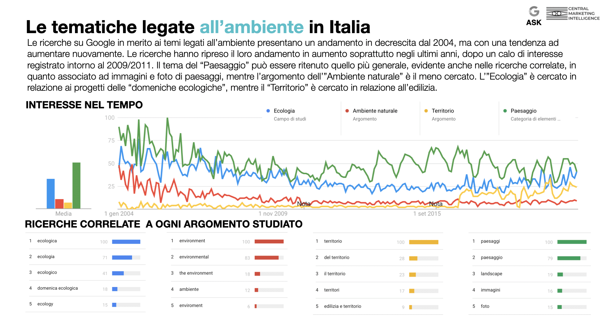 Perciò abbiamo dapprima svolto uno studio esplorativo sui temi richiesti, approfondendone i trend di mercato per i diversi ambiti, l’interesse ed il livello di consapevolezza degli utenti.