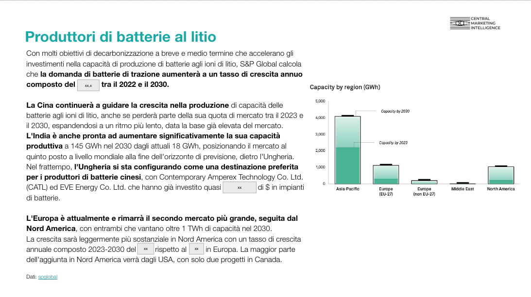 Per questo è stata avviata una Market X-Ray, una analisi del settore batterie al litio strutturata per: