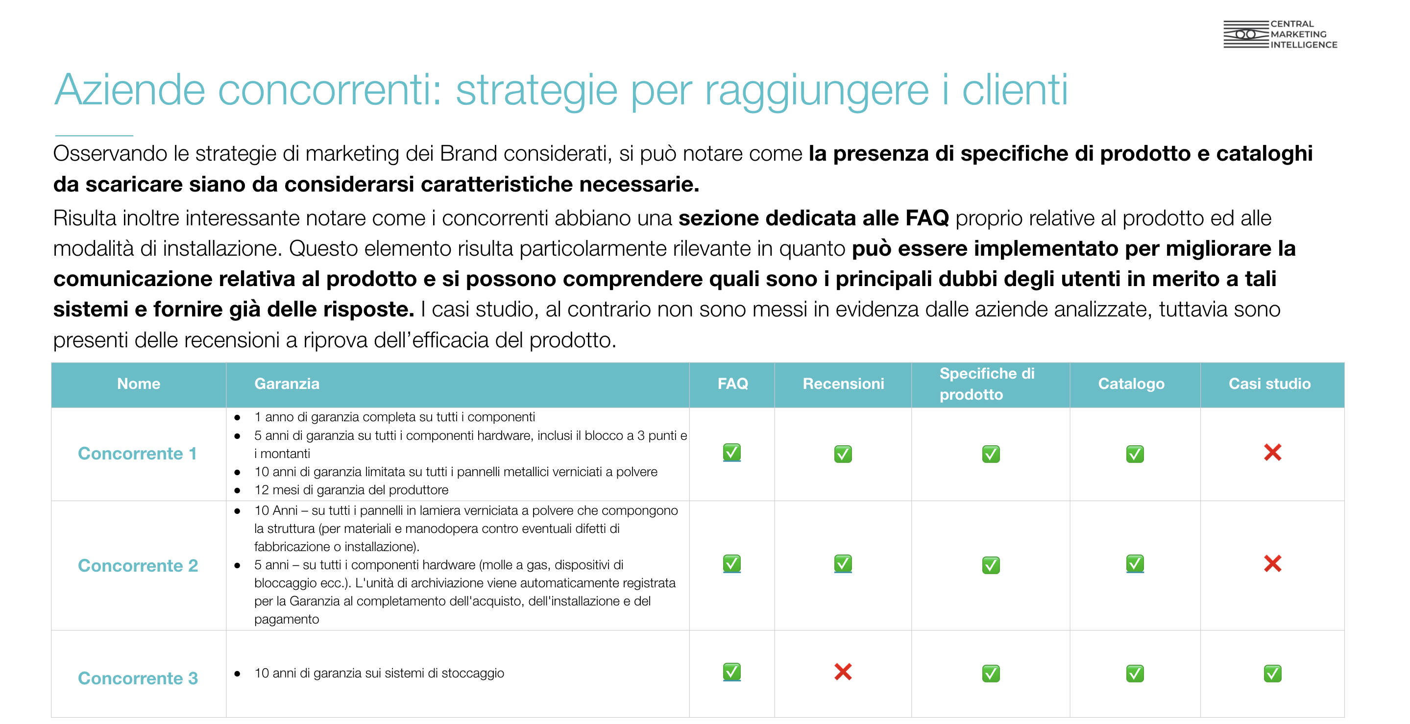 - i principali concorrenti che offrono già prodotti simili. In questa fase abbiamo identificato i principali attori che stanno attualmente proponendo in Italia e nel mondo reti elettrosaldate con scopi applicativi diversi da quelli usuali. Ci siamo quindi soffermati sull’analisi delle specifiche di prodotto e le varie applicazioni al fine di comprendere come vengono realmente realizzate e per quali utilizzi. Infine, abbiamo approfondito le strategie di comunicazione adottate dai concorrenti per individuare best practice ed angoli d’attacco poco presidiati (Approfondisci qui).