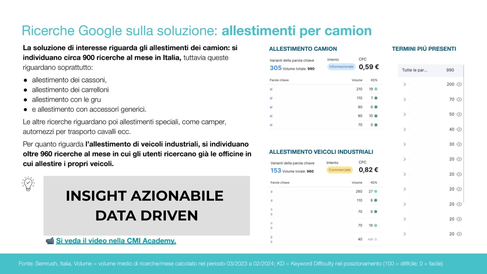 Una parte specifica dell’indagine ha riguardato lo studio della domanda attiva online, osservando chi cerca attivamente soluzioni automatizzate, quali keyword utilizza e quali dubbi emergessero in fase di ricerca. Questo passaggio ha permesso di distinguere tra bisogni latenti e bisogni già espressi.