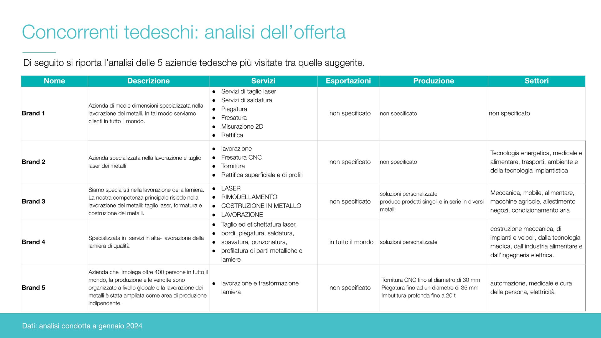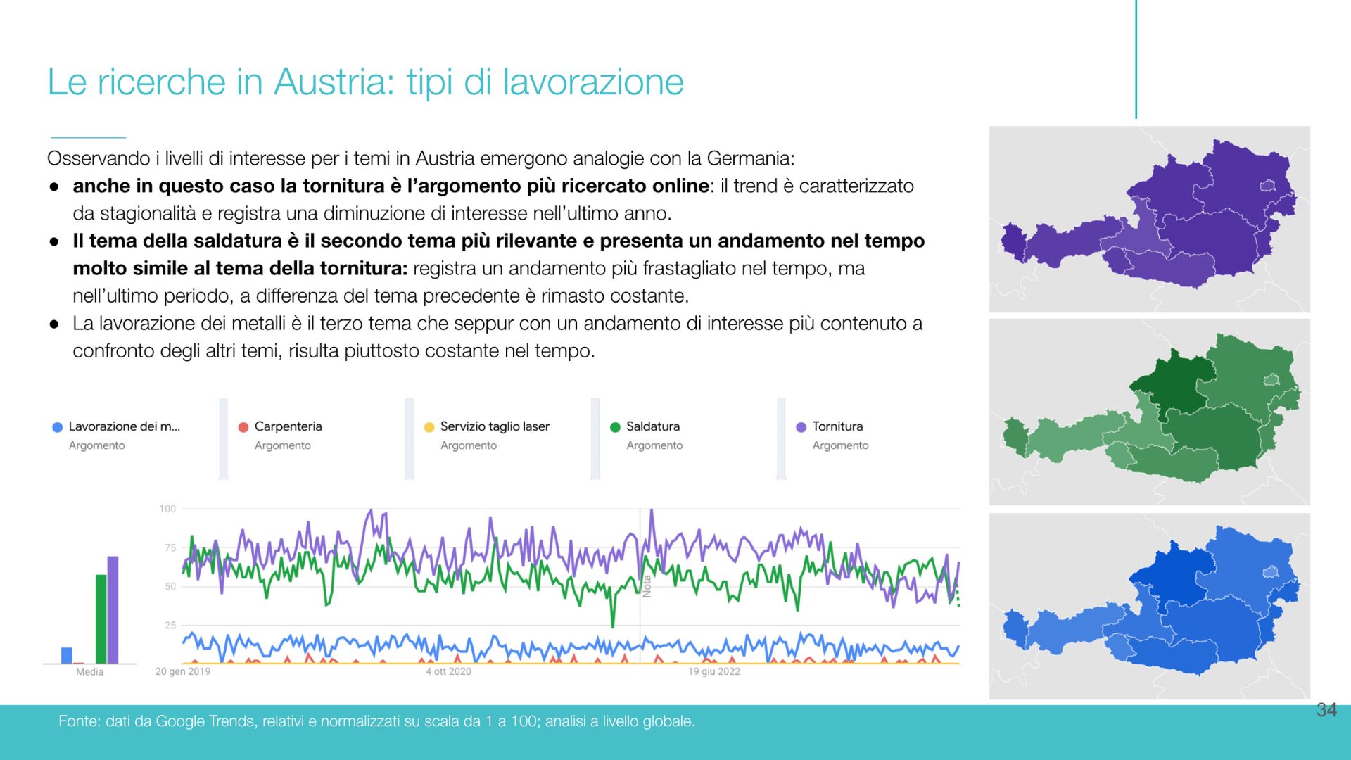 - esaminato il livello di interesse per la lavorazione dei metalli, concentrandoci sulle tipologie di servizi offerti dall’azienda e sui paesi target con il maggiore potenziale di mercato. In questa fase, attraverso lo studio delle ricerche online nei paesi selezionati sono emersi numerosi spunti sulle esigenze degli utenti interessati a questa tipologia di lavorazione.