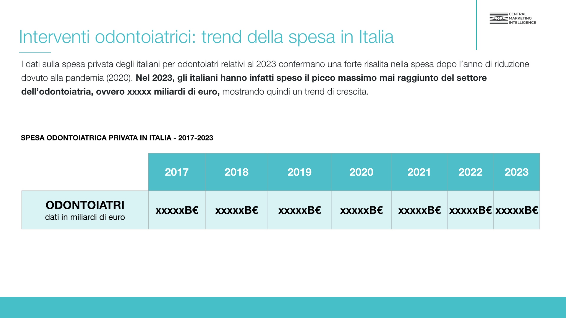Siamo stati incaricati di realizzare una consulenza strategica basata sui dati (Data Driven Advisory) per una clinica odontoiatrica che voleva analizzare in profondità il mercato locale e definire nuove strategie di crescita per ottimizzare il proprio posizionamento nel dentale. L’obiettivo era quello di ottimizzare le attività di marketing e individuare le leve strategiche per attrarre nuovi pazienti, differenziarsi dalla concorrenza e valutare eventuali collaborazioni con altri professionisti del settore.