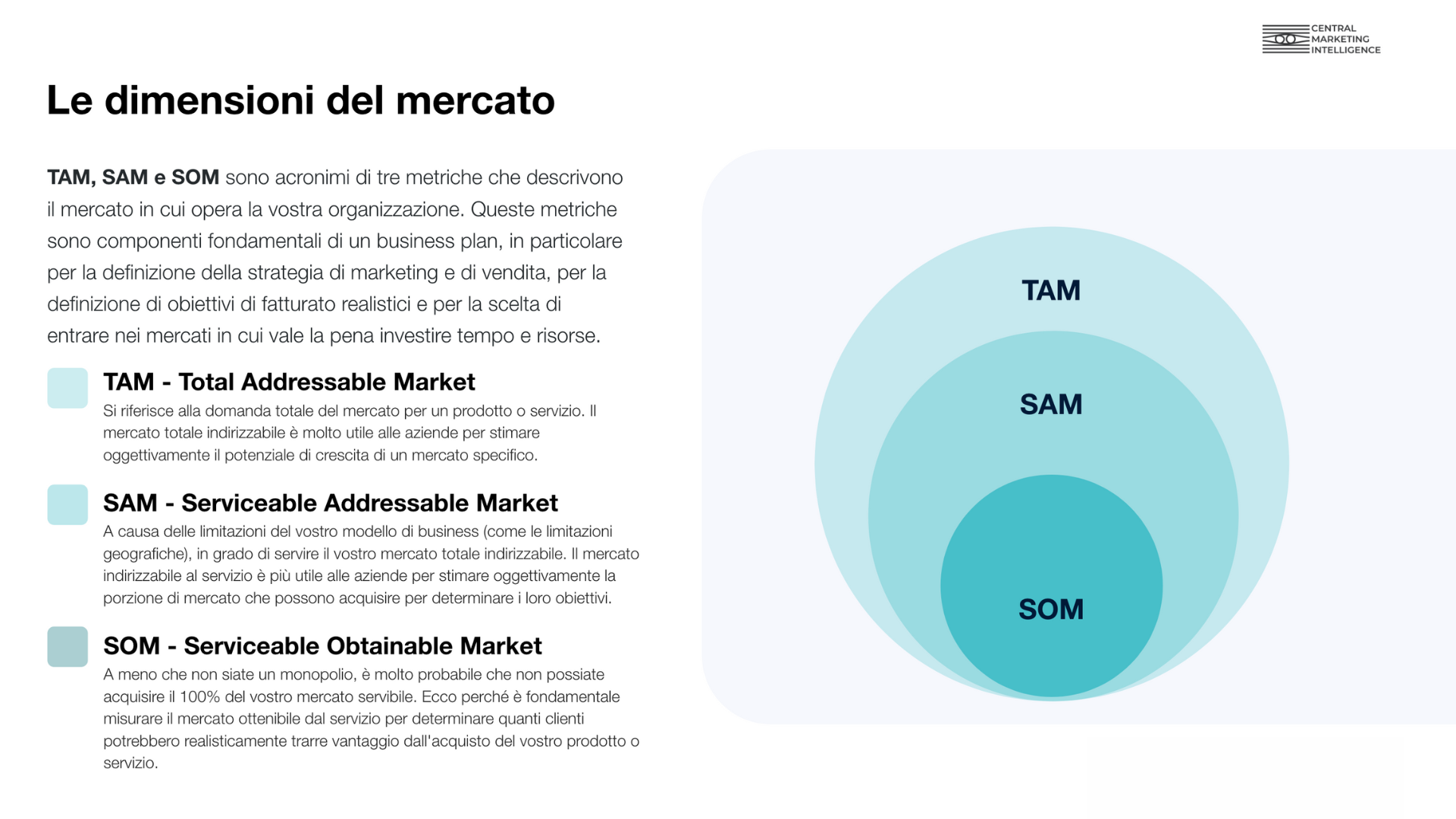 - Successivamente l’analisi si è focalizzata sull’individuazione delle caratteristiche demografiche della popolazione per comprendere le dimensioni del mercato potenzialmente raggiungibile attraverso la metodologia TAM, SAM, SOM (ne parliamo nel nostro video su YouTube). Il modello ci ha permesso di valutare separatamente due segmenti distinti di target, gli adulti ed i bambini, al fine di identificare le aree con maggiore potenziale di crescita.