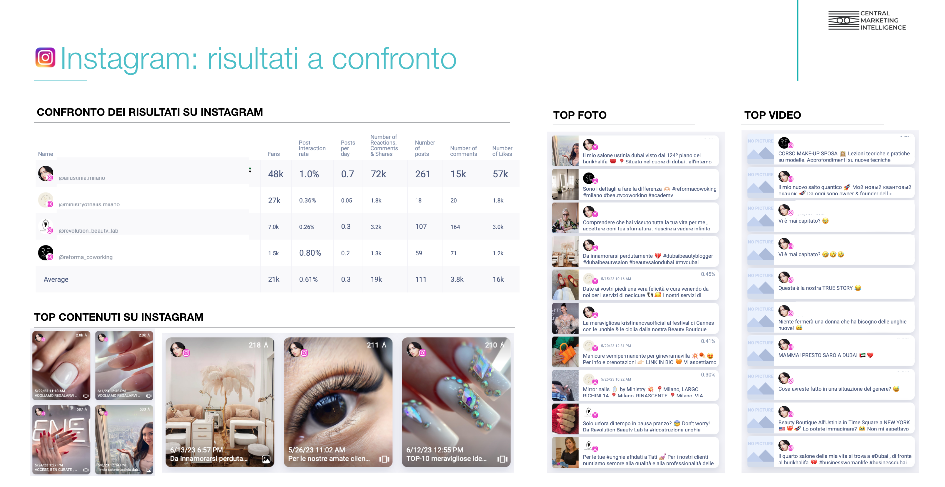 - L’analisi del panorama competitivo a livello locale, ovvero a Milano e provincia. Per avere una panoramica ancora più completa del settore abbiamo studiato i concorrenti locali, esaminando l’offerta proposta ai propri clienti ed i modelli di business. Ci siamo inoltre soffermati sull’analisi delle strategie comunicative online per identificare delle opportunità di differenziazione e per comprendere come gli altri centri di bellezza si stiano promuovendo online al fine di raggiungere i propri clienti. Un focus specifico è stato infine riservato all’analisi delle strategie che i concorrenti stanno applicando offline, individuando eventi, fiere e workshop a cui stanno prendendo parte.