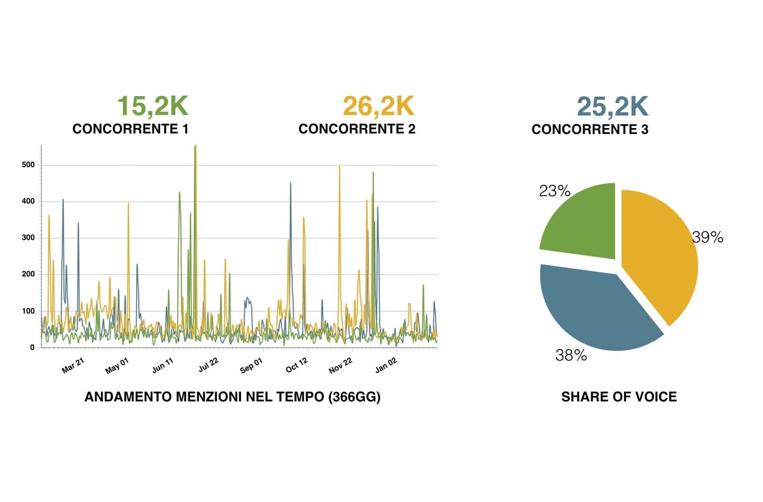 Pertanto, a tal fine i nostri agenti hanno utilizzato l’ascolto della rete per individuare la visibilità online del brand e dei suoi concorrenti, comparando i risultati ottenuti, i canali online in cui se ne parlava e il tasso di coinvolgimento dell’audience.