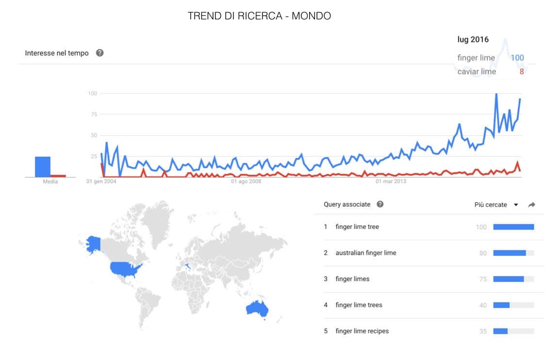 • prima di tutto abbiamo approfondito l’interesse degli utenti attraverso uno studio delle ricerche su Google delle persone, scoprendo che questo mitico agrume in effetti era sempre più cercato dalle persone nel tempo.