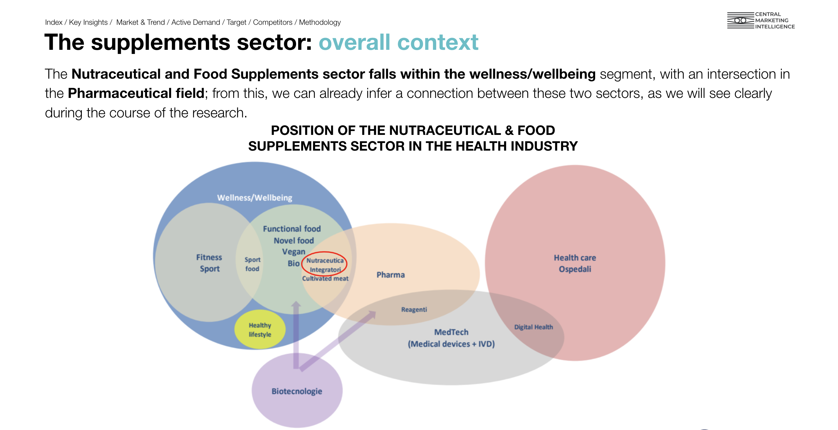 - Analizzare il settore degli integratori alimentari