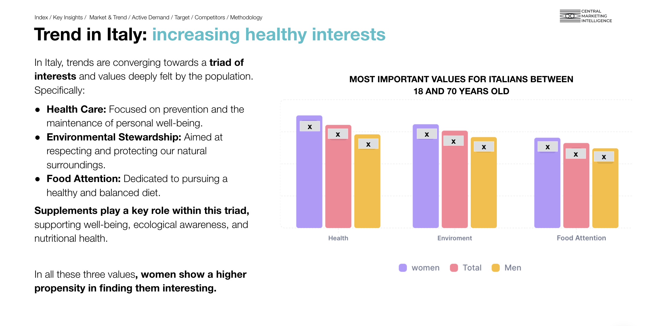 - Quanto è elevata la domanda e la consapevolezza dei clienti per gli integratori alimentari;