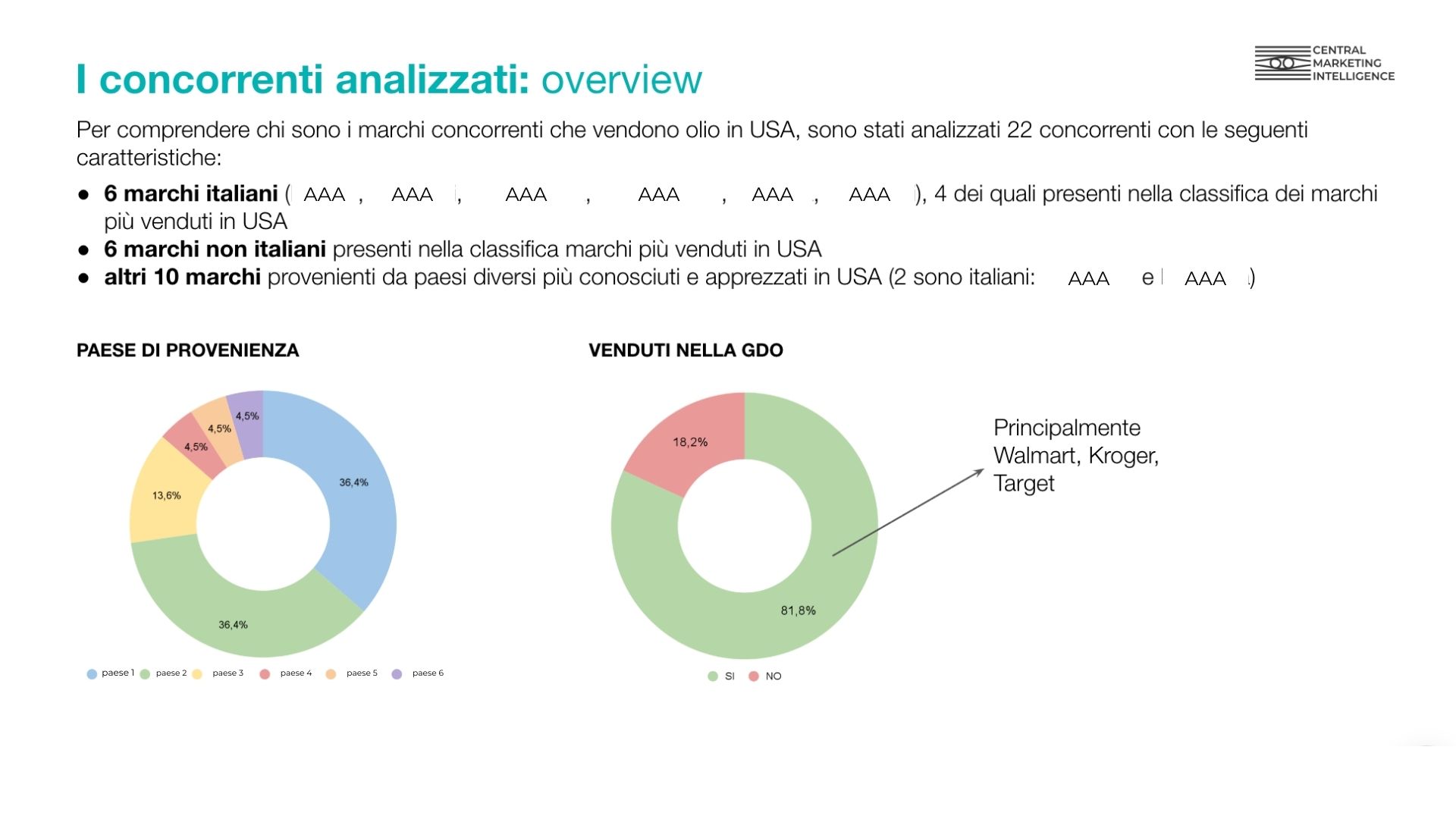 - L’analisi della domanda attiva, ci ha permesso di identificare e mappare i distributori e buyer alimentari negli USA. Abbiamo, quindi, identificato i principali attori della GDO americana e i buyer più adatti per il brand, creando una lista di partner potenziali per la distribuzione e fornendo al Cliente i contatti dei decision maker. Inoltre, abbiamo esplorato anche il canale dell’e-commerce, per comprendere i livelli di utilizzo del target americano in ambito alimentare ed il percorso decisionale.