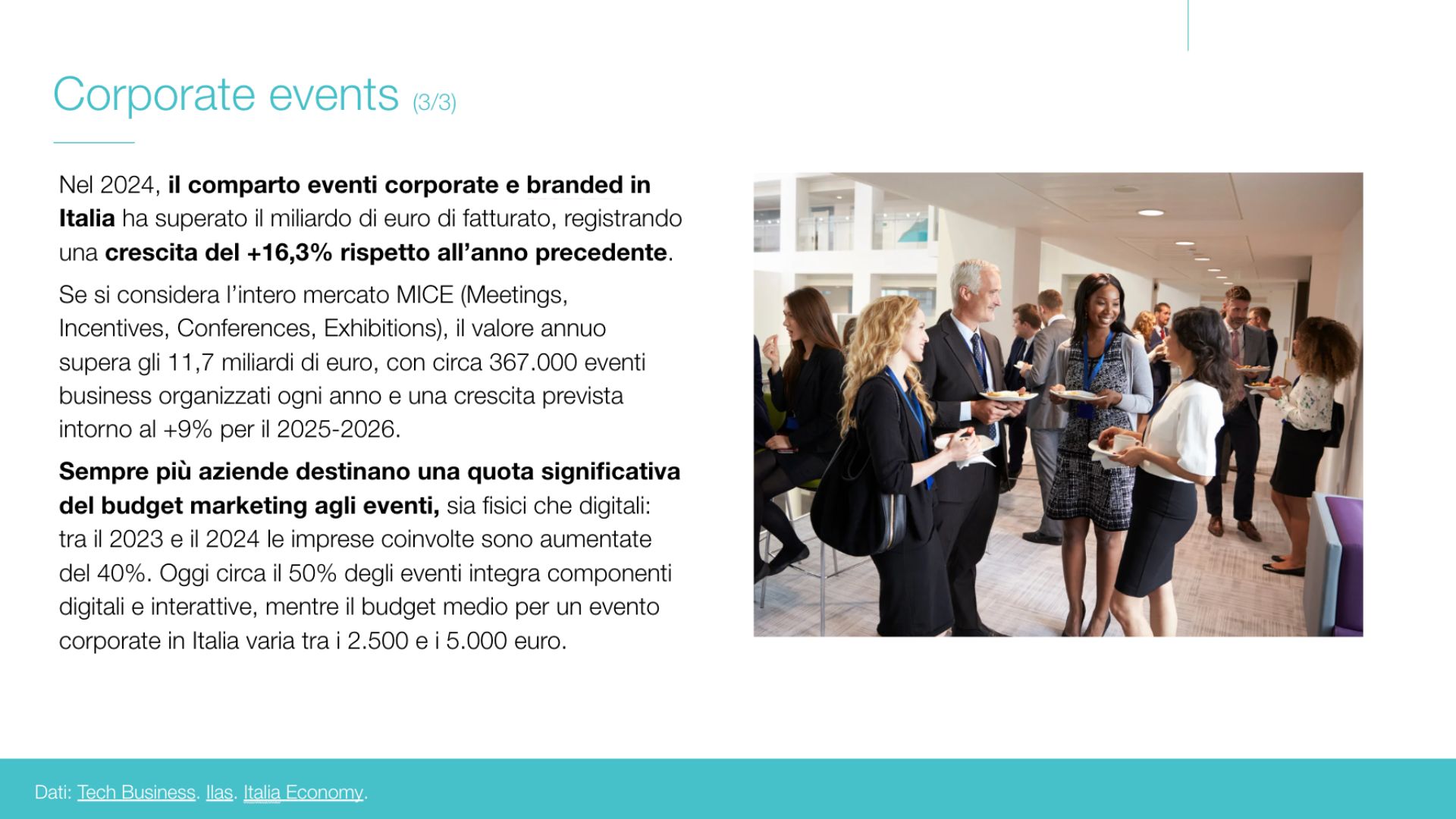 La cliente necessitava di rispondere a tre domande concrete: quali format di eventi abbiano domanda reale e marginalità sufficiente per una location per eventi a Firenze di queste dimensioni; quali segmenti di clientela siano più profittevoli e raggiungibili; e quali canali o partnership garantiscano una commercializzazione efficace e sostenibile nel tempo. In background, l’intero lavoro doveva produrre dati e stime utilizzabili direttamente nel business plan a supporto della richiesta di finanziamento.