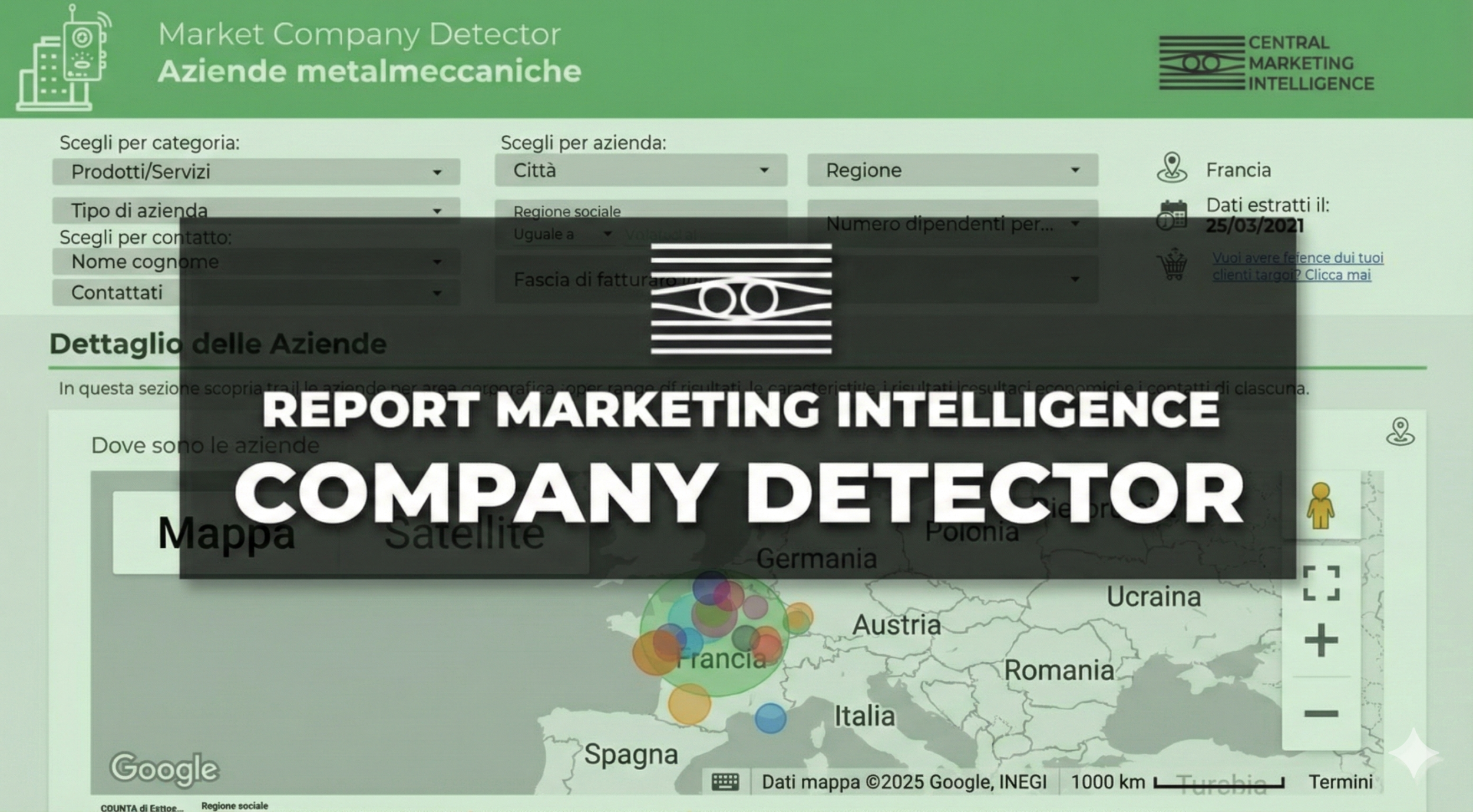 Il Report Marketing Intelligence – Company Detector è un database dinamico che ti permette di identificare, analizzare e contattare le aziende italiane più in linea con il tuo target commerciale.